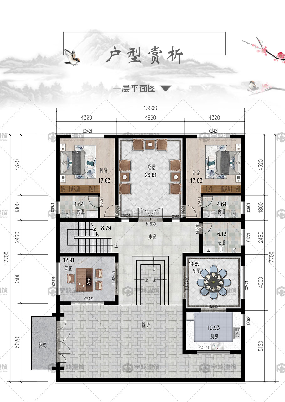 開間:13.5米 | 進深:17.7米 | 占地面積:238平方米 | 建筑面積:316平方米 |