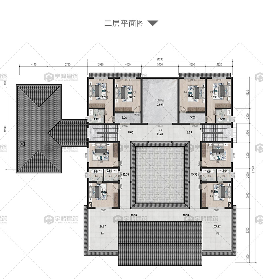640平帶獨(dú)立柴火房中式別墅效果圖