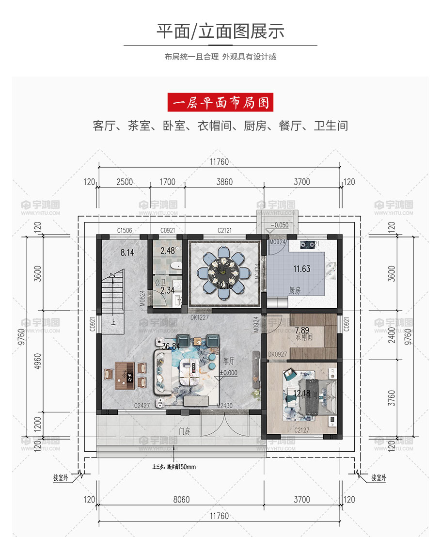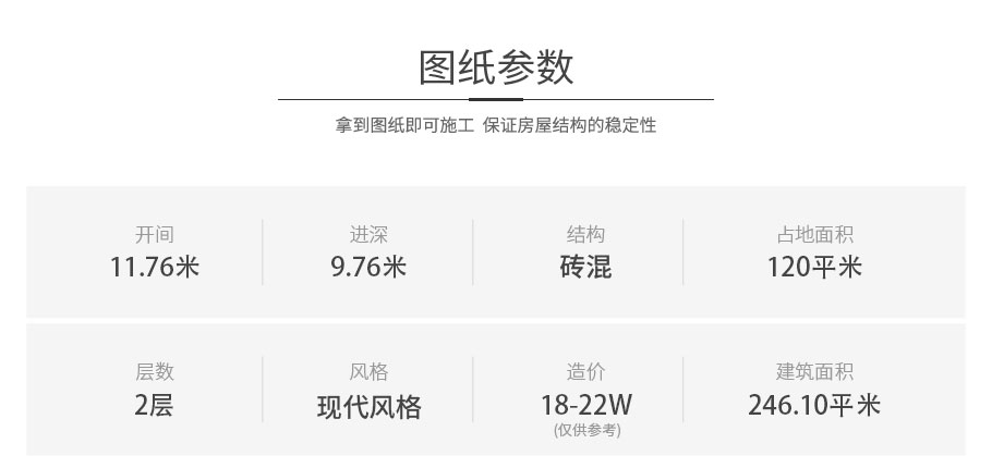 開間:11.76米 | 進深:9.76米 | 占地面積:120平方米 | 建筑面積:246平方米 |