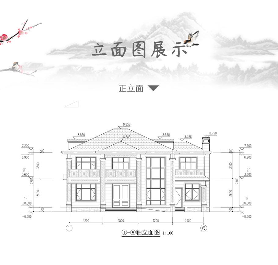 建筑圖: | 建筑平面圖:一層平面圖,二層平面圖; 建筑立面圖:東立面圖,西立面圖,南立面圖,北立面圖,剖面圖; 大樣圖:樓梯詳圖,細部大樣,門窗大樣 |