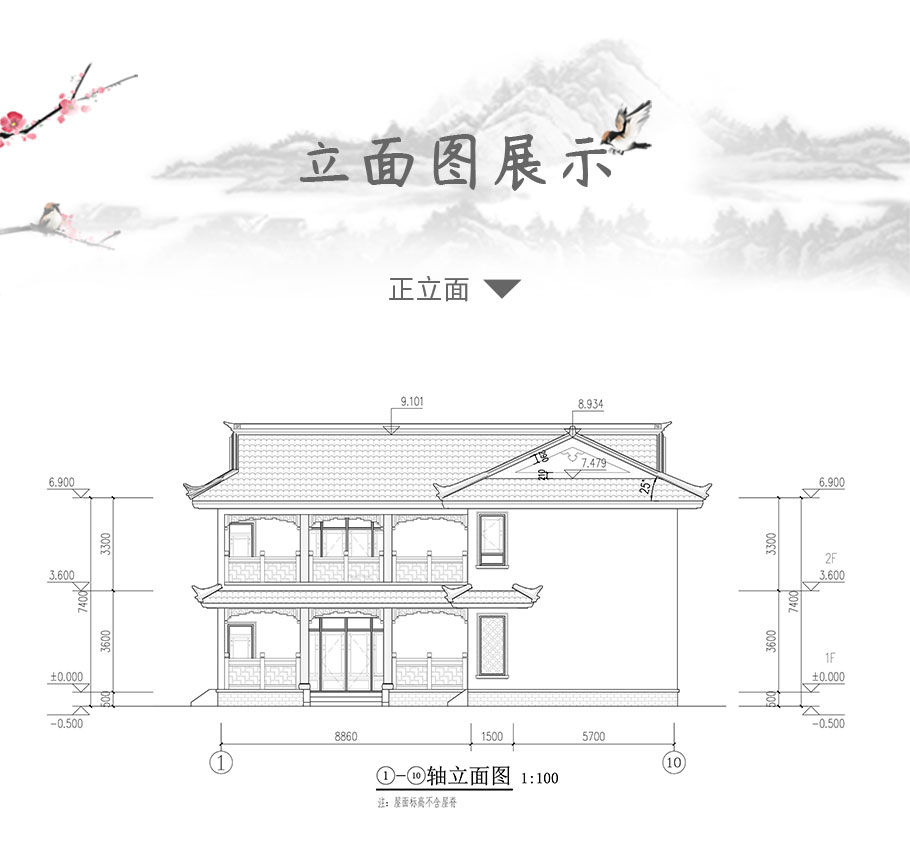 建筑圖: | 建筑平面圖:一層平面圖,二層平面圖; 建筑立面圖:東立面圖,西立面圖,南立面圖,北立面圖,剖面圖; 大樣圖:樓梯詳圖,細部大樣,門窗大樣 |