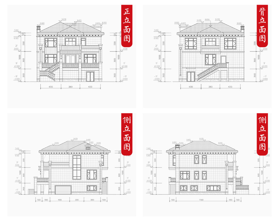 建筑平面圖:一層平面圖,二層平面圖,三層平面圖; 建筑立面圖:東立面圖,西立面圖,南立面圖,北立面圖,剖面圖; 大樣圖:樓梯詳圖,細(xì)部大樣,門窗大樣 |
