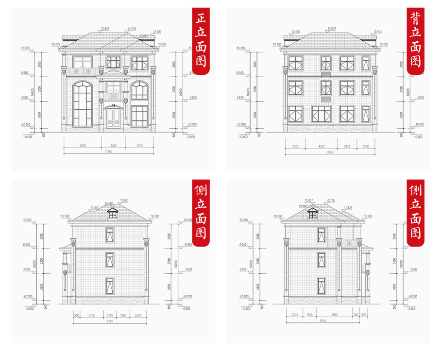 建筑平面圖:一層平面圖,二層平面圖,三層平面圖; 建筑立面圖:東立面圖,西立面圖,南立面圖,北立面圖,剖面圖; 大樣圖:樓梯詳圖,細部大樣,門窗大樣 |