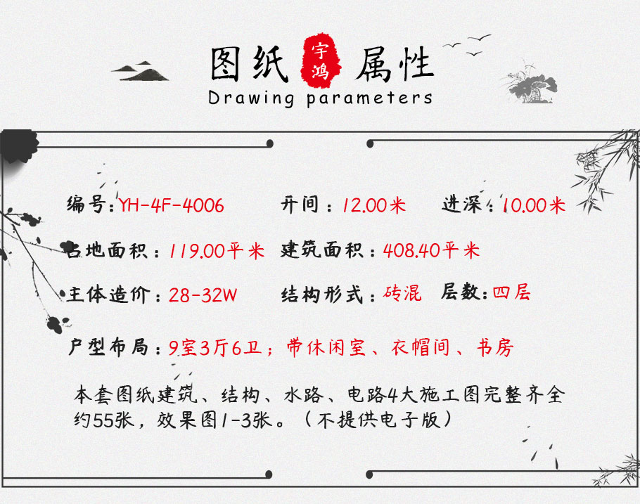 成品圖紙>12x10米四層中式農(nóng)村別墅設(shè)計圖紙