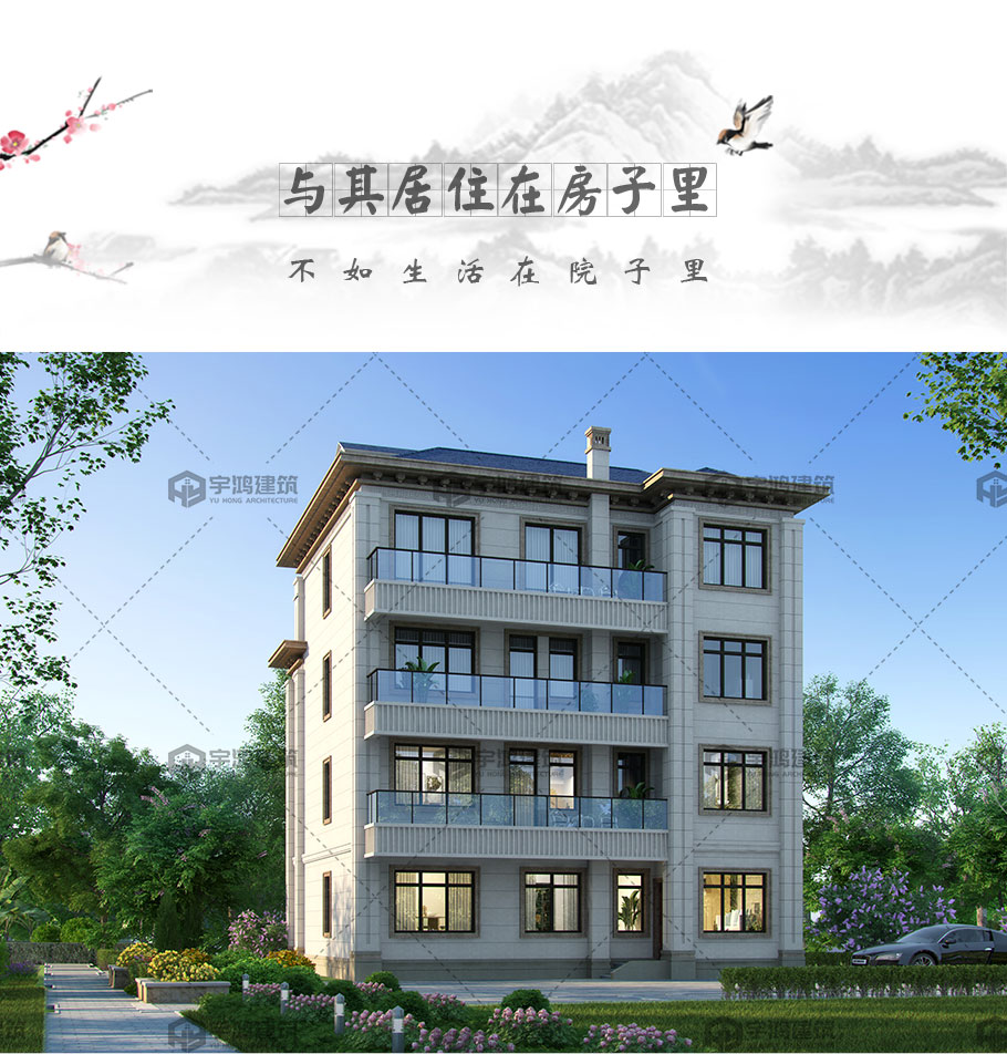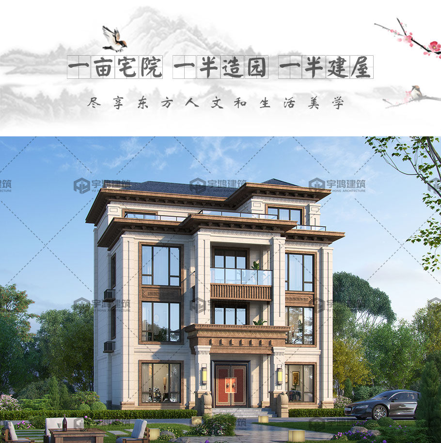 四層新中式框架結(jié)構(gòu)別墅占地164平