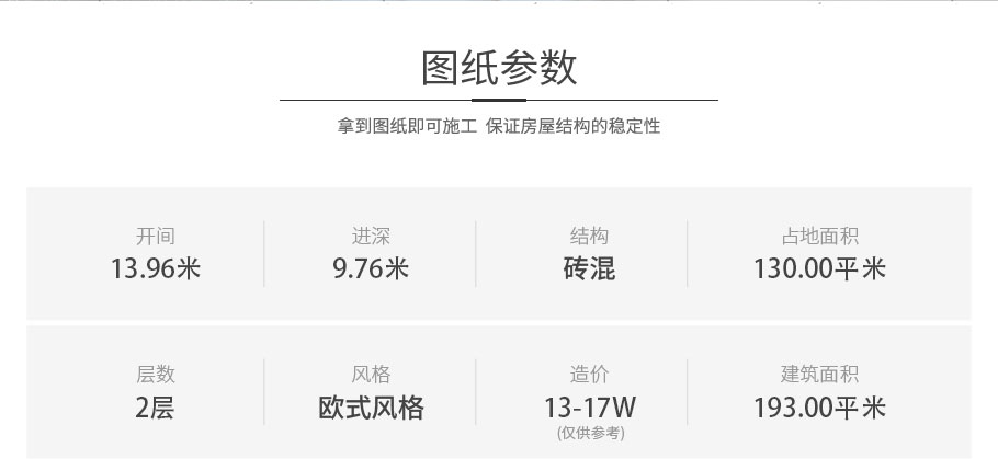 開間:13.9米 | 進深:9.7米 | 占地面積:130平方米 | 建筑面積:193平方米 |