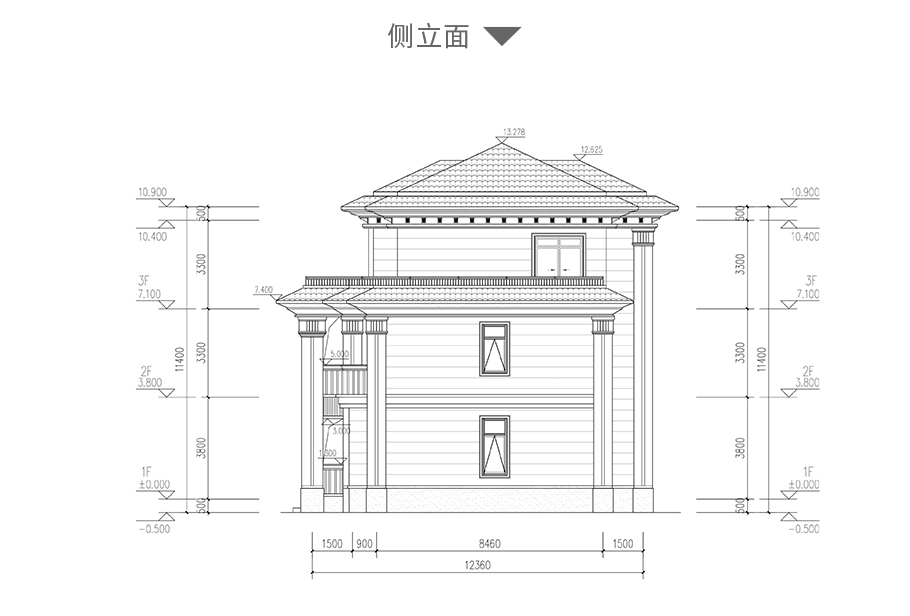 成品圖紙>三層新中式大氣別墅造型占地188平自建別墅設(shè)計(jì)