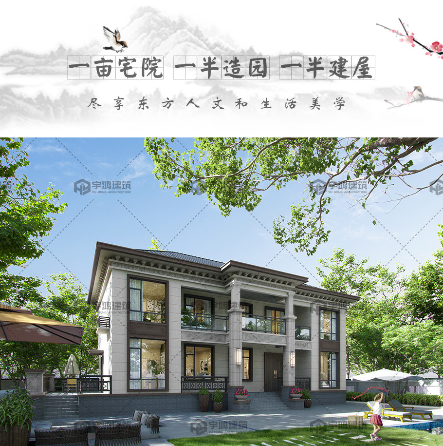 風格:新中式 | 層數:二層 | 結構形式:框架結構 | 圖紙編號:YH-2-2560 |