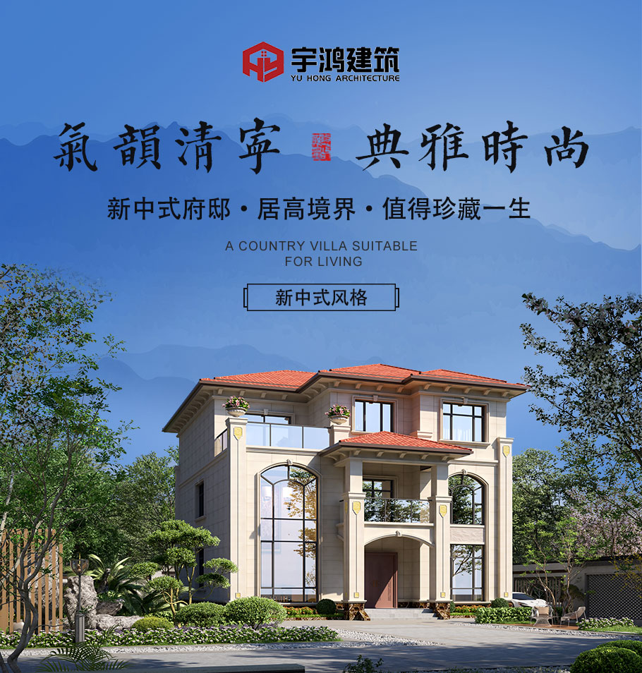 框架結構新中式別墅設計占地150平三層設計圖紙