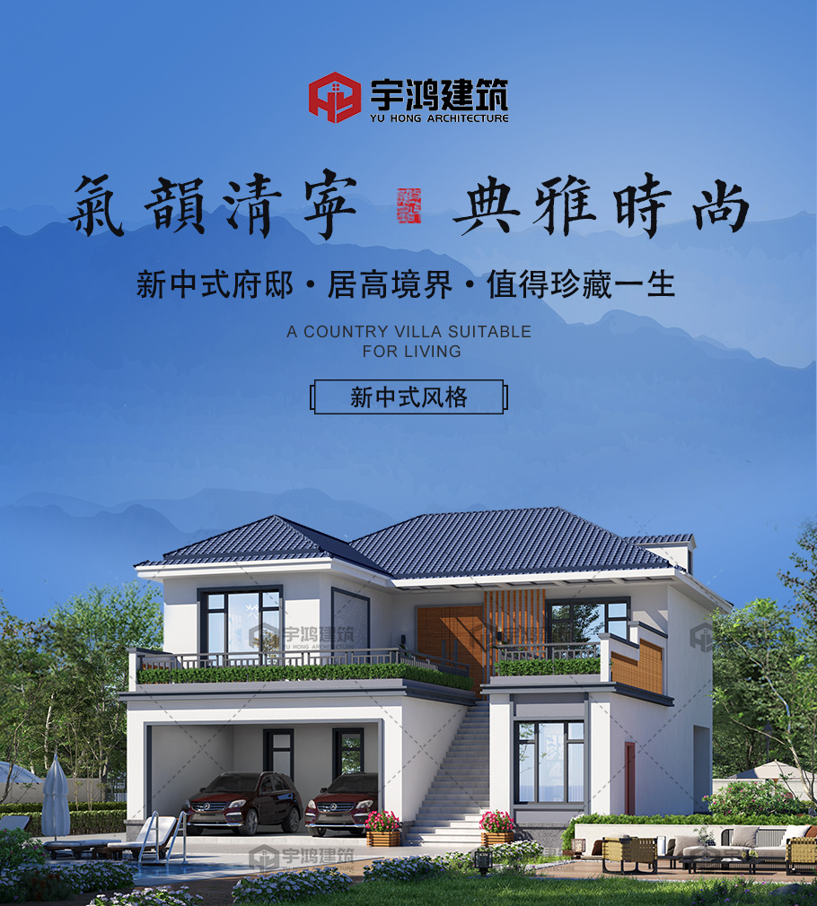 風格:新中式 | 層數:二層 | 結構形式:磚混結構 | 圖紙編號:YH-2-6158 |