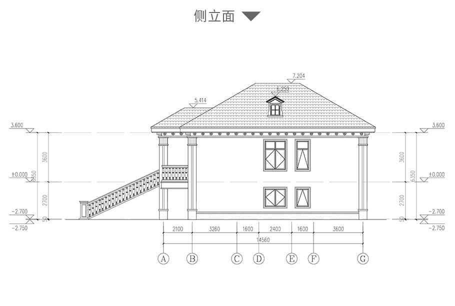 結構圖: | 柱施工圖:基礎平面圖,一層柱平面圖,二層柱平面圖,屋頂柱平面圖; 梁施工圖:一層梁平法施工圖,二層梁平法施工圖,頂層梁平法施工圖; 板施工圖:層板平法施工圖,二層板平法施工圖,屋頂層板平法施工圖 詳圖:樓梯平面,樓梯剖面圖; 其他:坡屋面施工說明圖一,坡屋面施工說明圖二 |