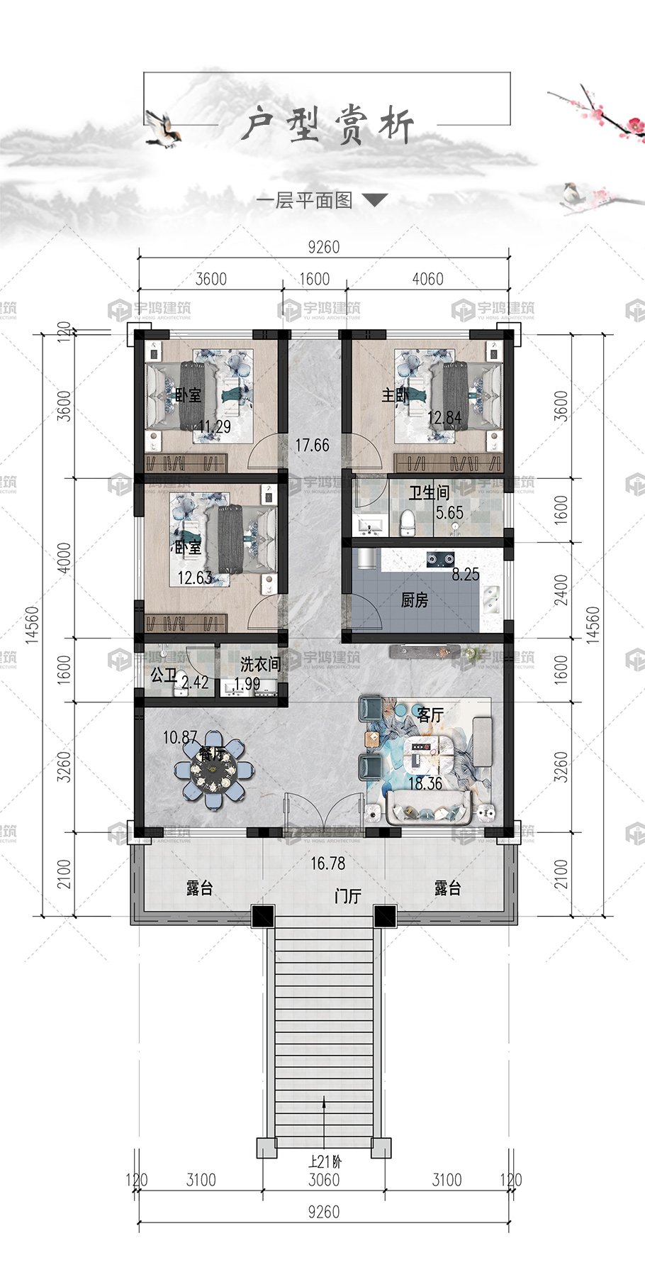 開間:9.26米 | 進深:14.56米 | 占地面積:144平方米 | 建筑面積:244.7平方米 |