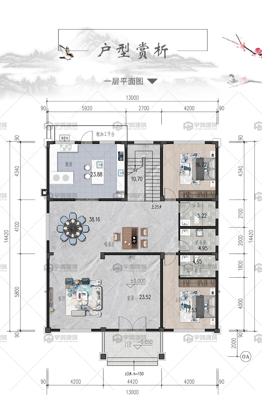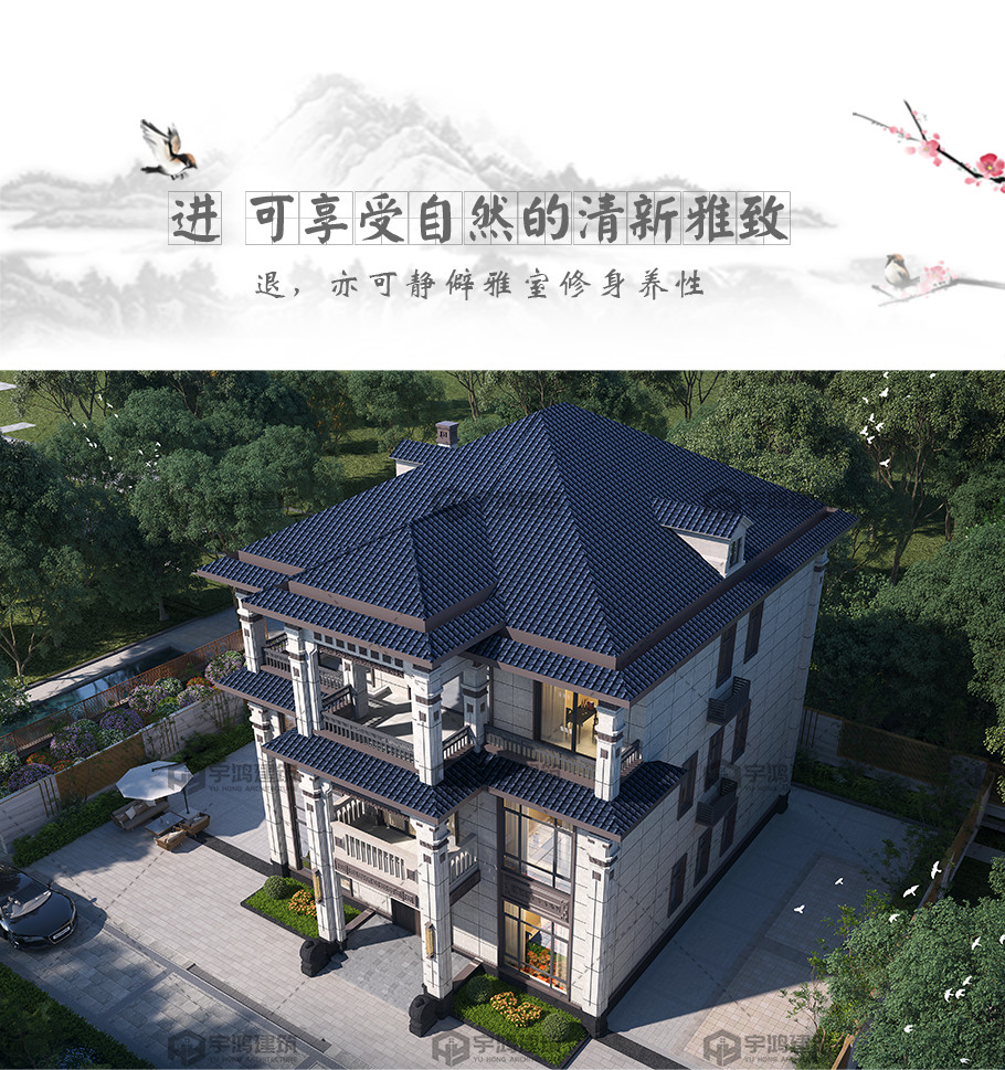 高端大氣三層新中式別墅占地196平自建別墅圖紙