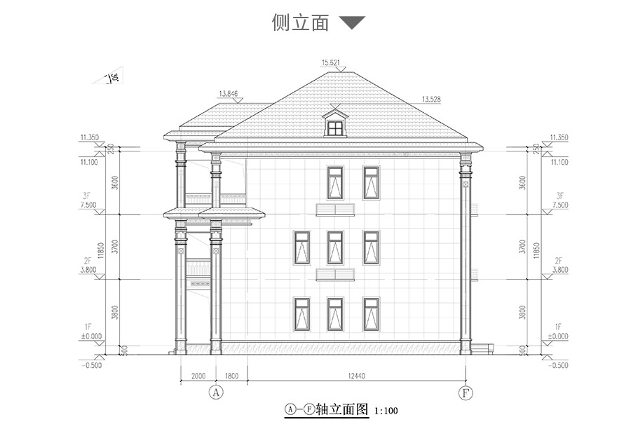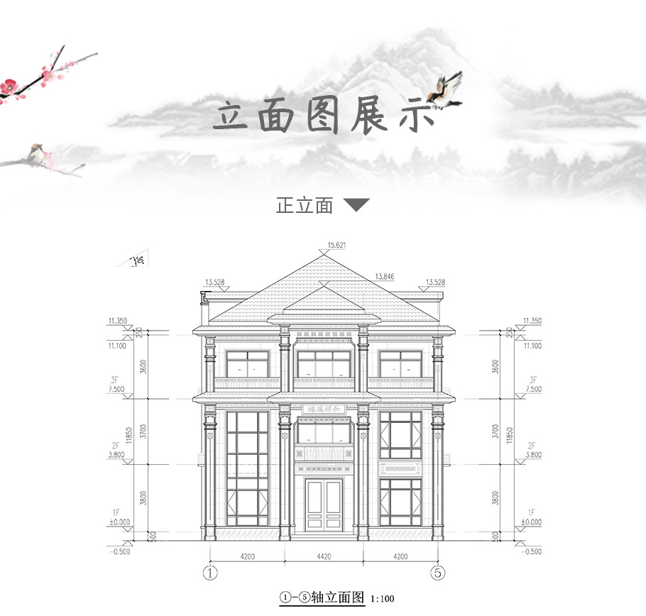 建筑平面圖:一層平面圖,二層平面圖,三層平面圖; 建筑立面圖:東立面圖,西立面圖,南立面圖,北立面圖,剖面圖; 大樣圖:樓梯詳圖,細部大樣,門窗大樣 |