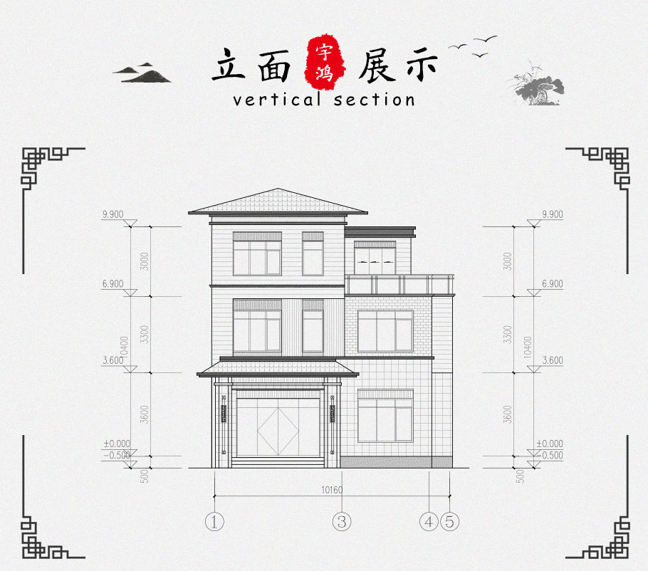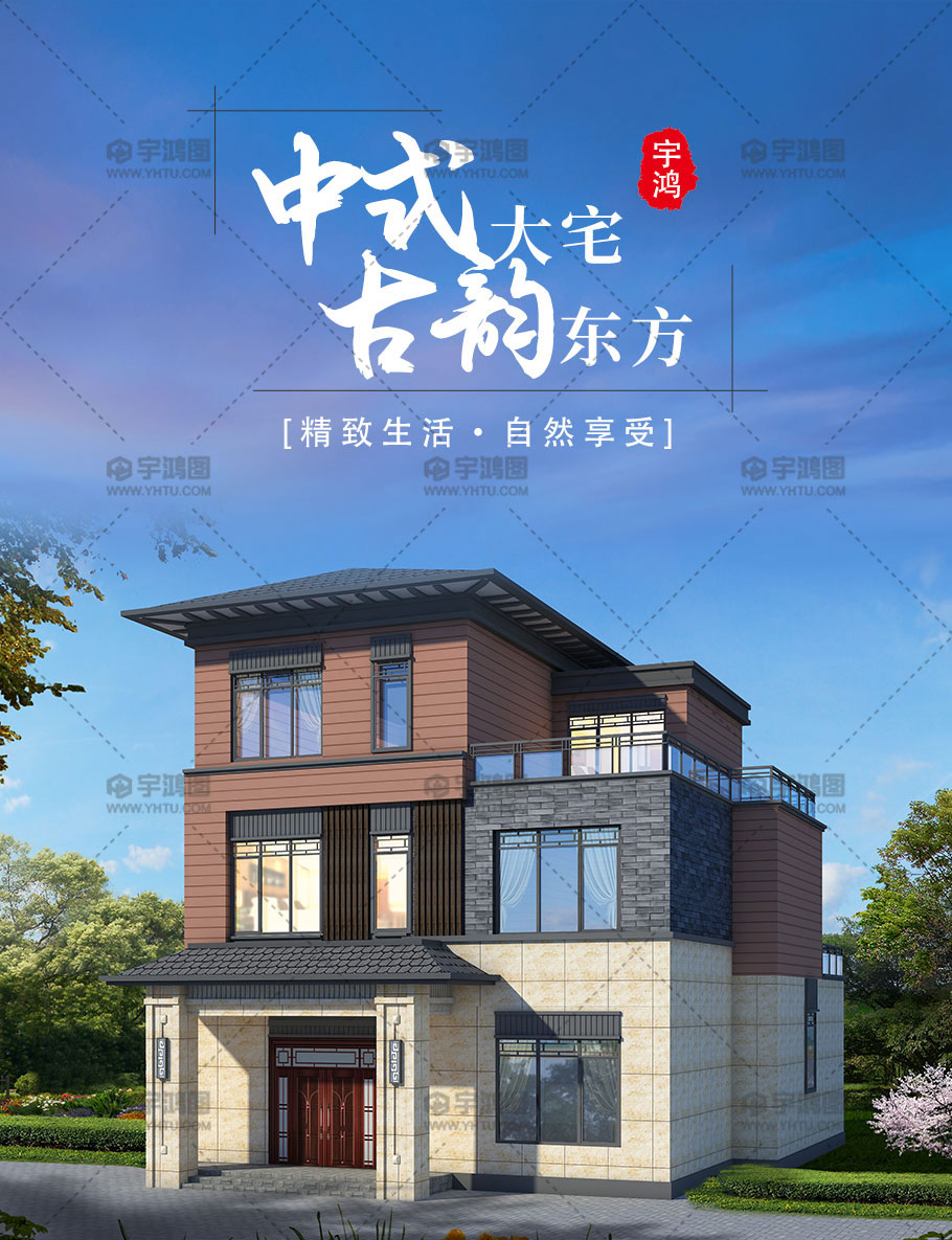 成品圖紙>121平大方好看中式三層農(nóng)村別墅圖紙