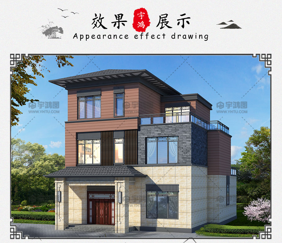 本戶型為121平大方好看中式三層農(nóng)村別墅款式圖紙,在農(nóng)村25萬就能建造出豪華大氣、戶型實(shí)用的別墅。本方案一二層都有大客廳,所有臥室?guī)б旅遍g,帶多個(gè)露臺(tái)。外觀高低錯(cuò)落有致,建筑色彩鮮艷豐富,富有層次感的坡屋頂,它象征著富足美好的鄉(xiāng)村田園生活。