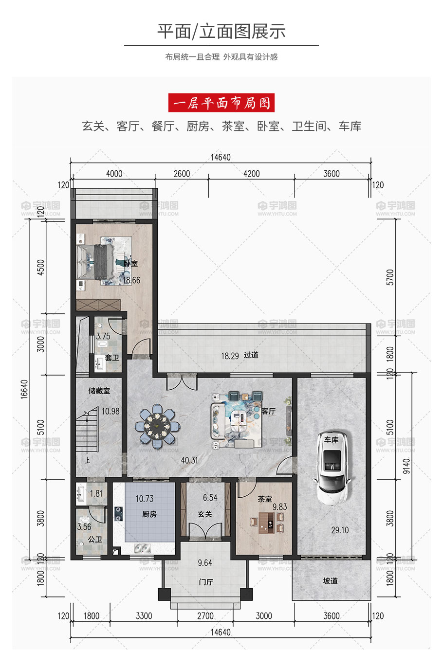 開間:14.64米 | 進深:16.64米 | 占地面積:165.6平方米 | 建筑面積:356平方米 |