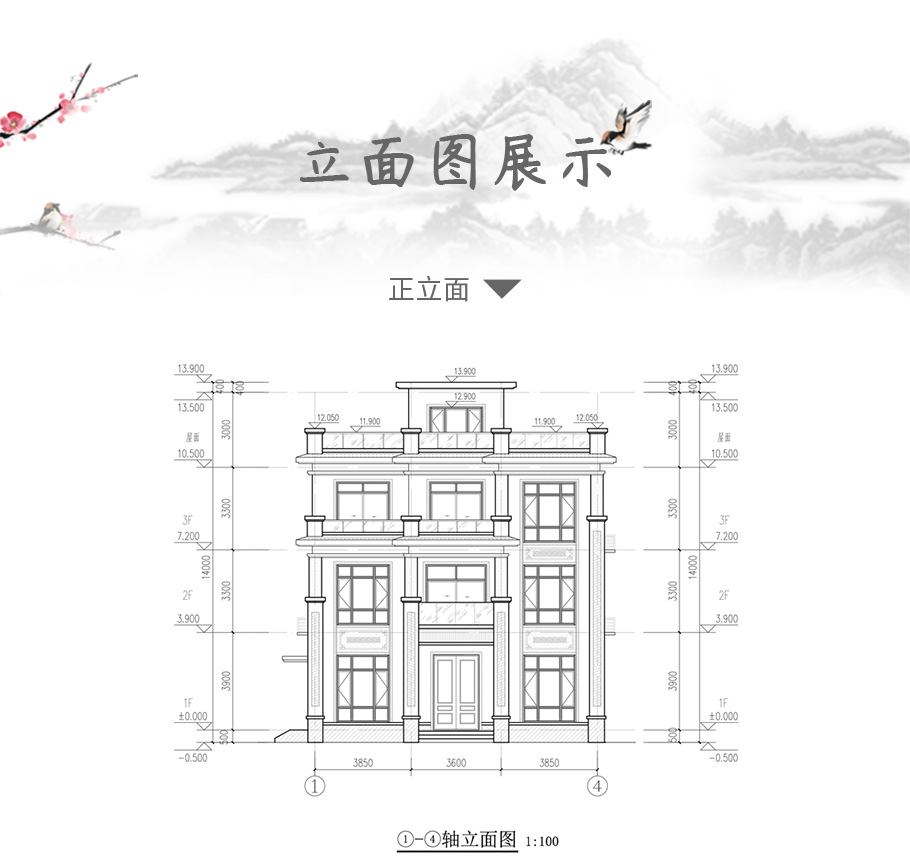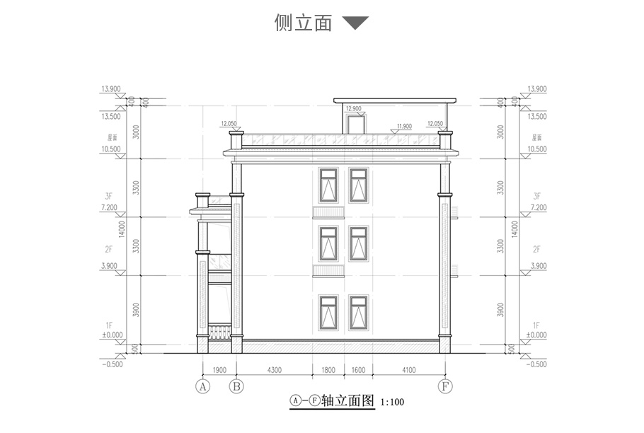 建筑平面圖:一層平面圖,二層平面圖,三層平面圖; 建筑立面圖:東立面圖,西立面圖,南立面圖,北立面圖,剖面圖; 大樣圖:樓梯詳圖,細部大樣,門窗大樣 |