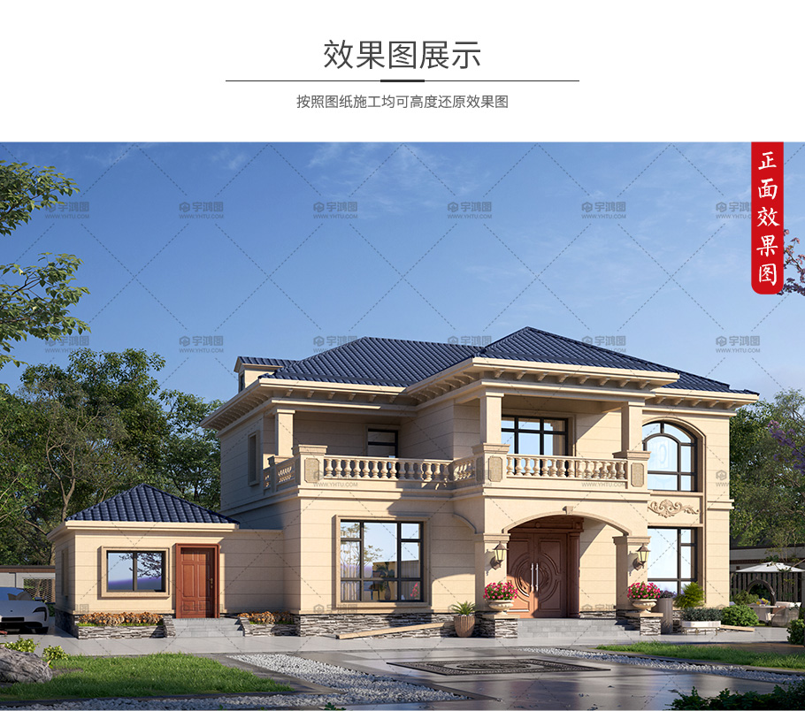 成品圖紙>兩層磚混結(jié)構(gòu)歐式別墅占地190平自建別墅
