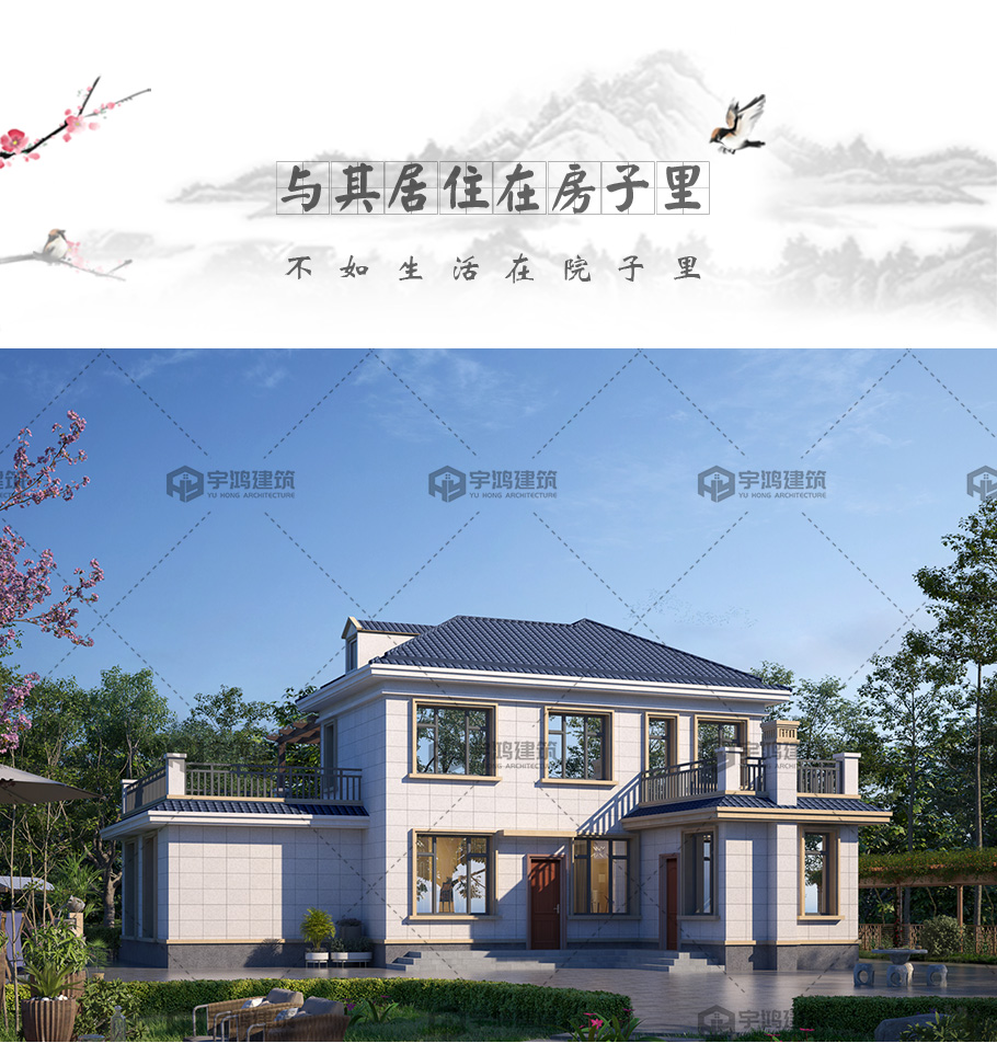 簡單實用兩層新中式占地188平自建別墅圖紙