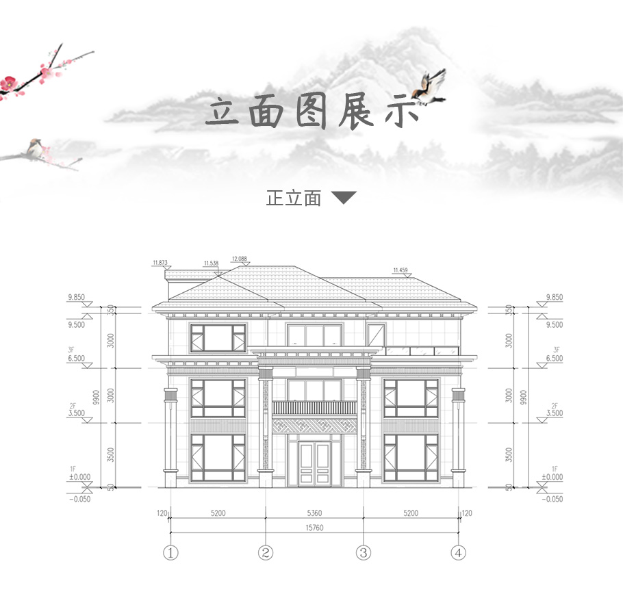 風(fēng)格:新中式 | 層數(shù):三層 | 結(jié)構(gòu)形式:磚混結(jié)構(gòu) | 圖紙編號(hào):YH-3-6270 |