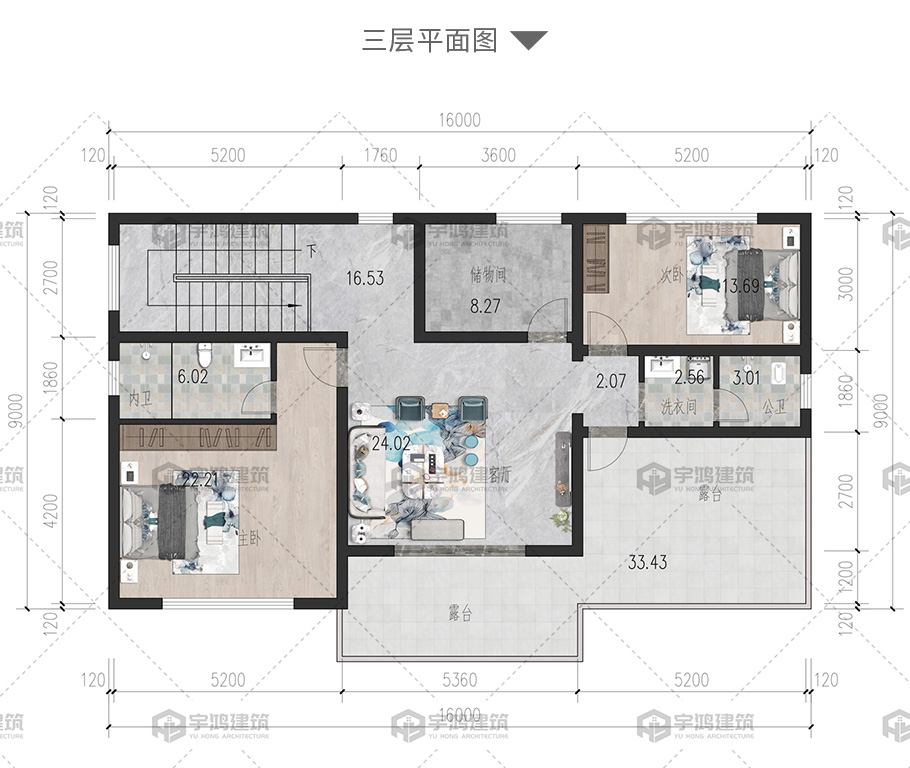 開(kāi)間:16米 | 進(jìn)深:9米 | 占地面積:150.5平方米 | 建筑面積:402平方米 |