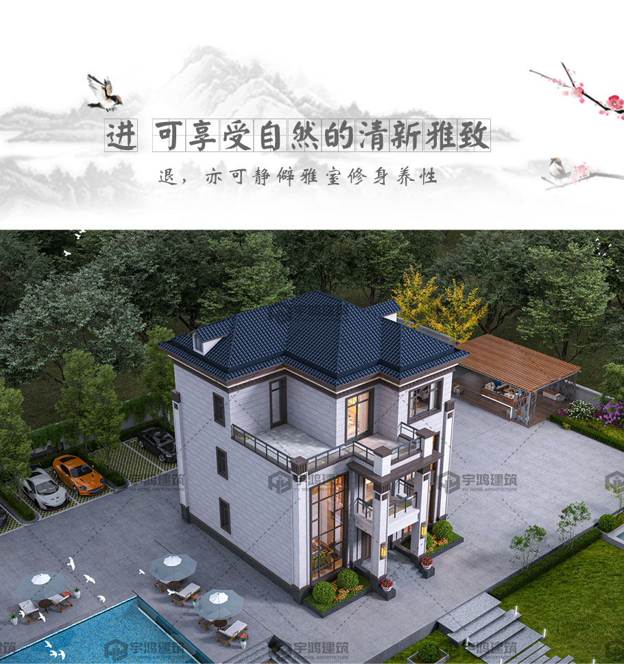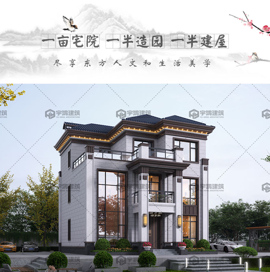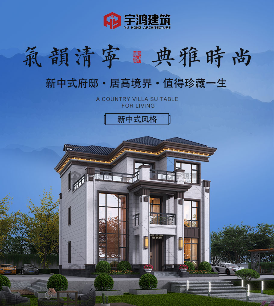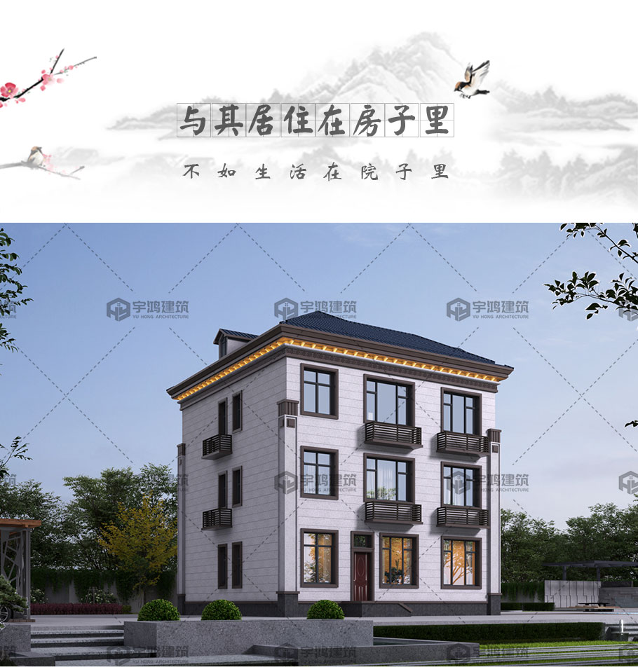 占地127平三層新中式別墅磚混結(jié)構(gòu)自建別墅圖紙