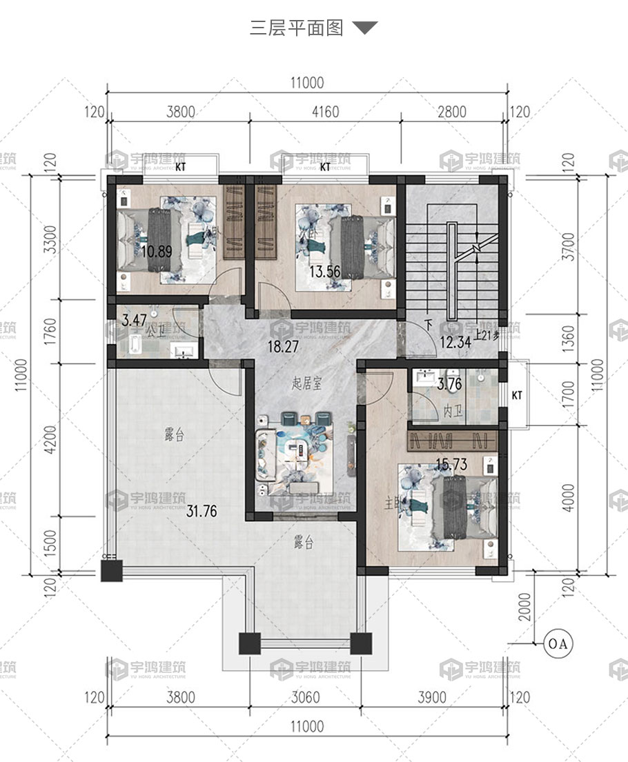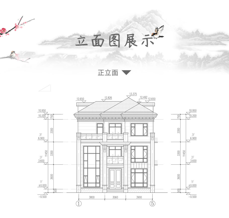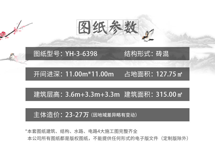 成品圖紙>占地127平三層新中式別墅磚混結(jié)構(gòu)自建別墅圖紙