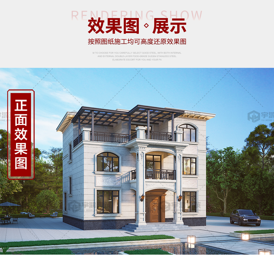 風格:歐式 | 層數:三層 | 結構形式:框架結構 | 圖紙編號:YH-3-6769 |