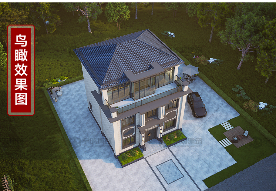 開間進深9.66*9.85新中式三層別墅全套圖紙