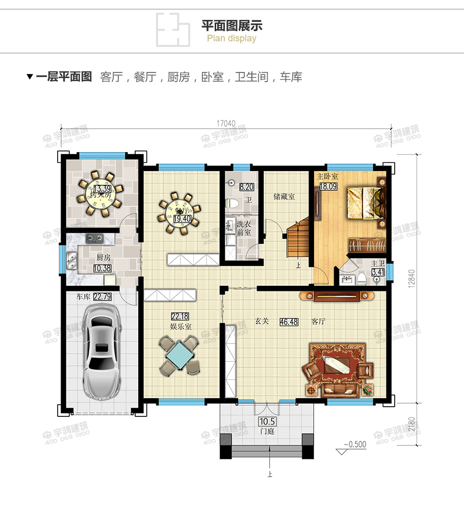 開間:17.04米 | 進深:15.02米 | 占地面積:213.2平方米 | 建筑面積:406.4平方米 |
