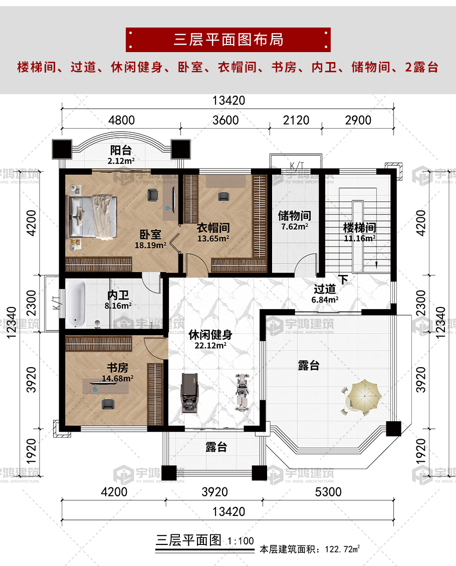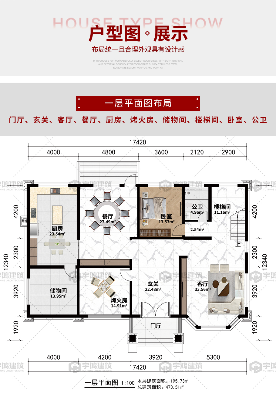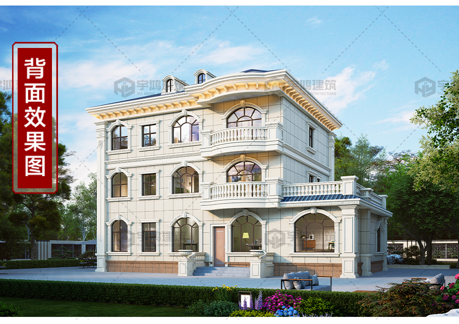 17.42x12.34米框架結構三層歐式別墅全套圖紙