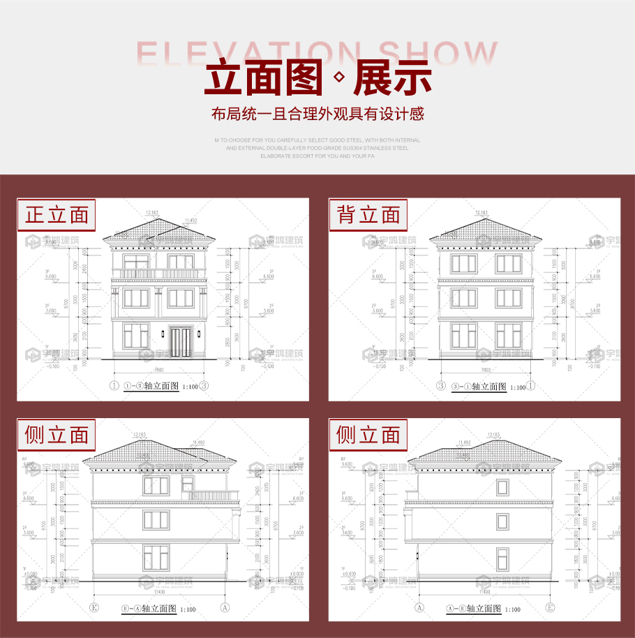| 建筑圖: | 建筑平面圖:一層平面圖,二層平面圖,三層平面圖; 建筑立面圖:東立面圖,西立面圖,南立面圖,北立面圖,剖面圖; 大樣圖:樓梯詳圖,細(xì)部大樣,門窗大樣 |