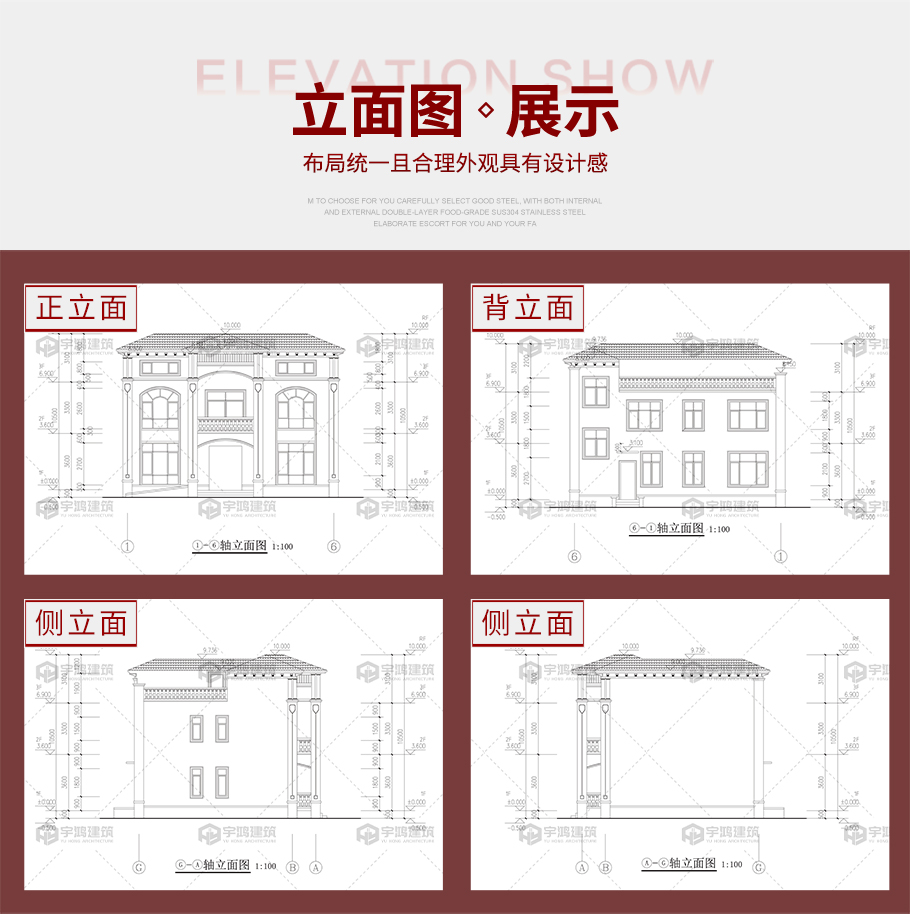 建筑圖: 建筑平面圖:一層平面圖,二層平面圖,三層平面圖; 建筑立面圖:東立面圖,西立面圖,南立面圖,北立面圖,剖面圖; 大樣圖:樓梯詳圖,細部大樣,門窗大樣 |