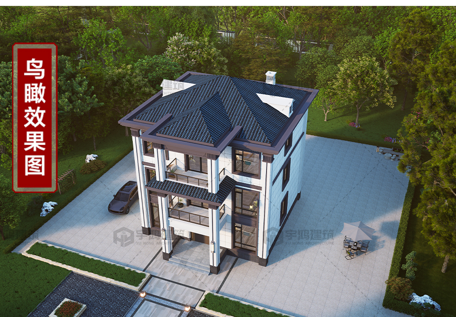 | 風格:新中式 | 層數:三層 | 結構形式:框架結構 | 圖紙編號:YH-3-6856 |