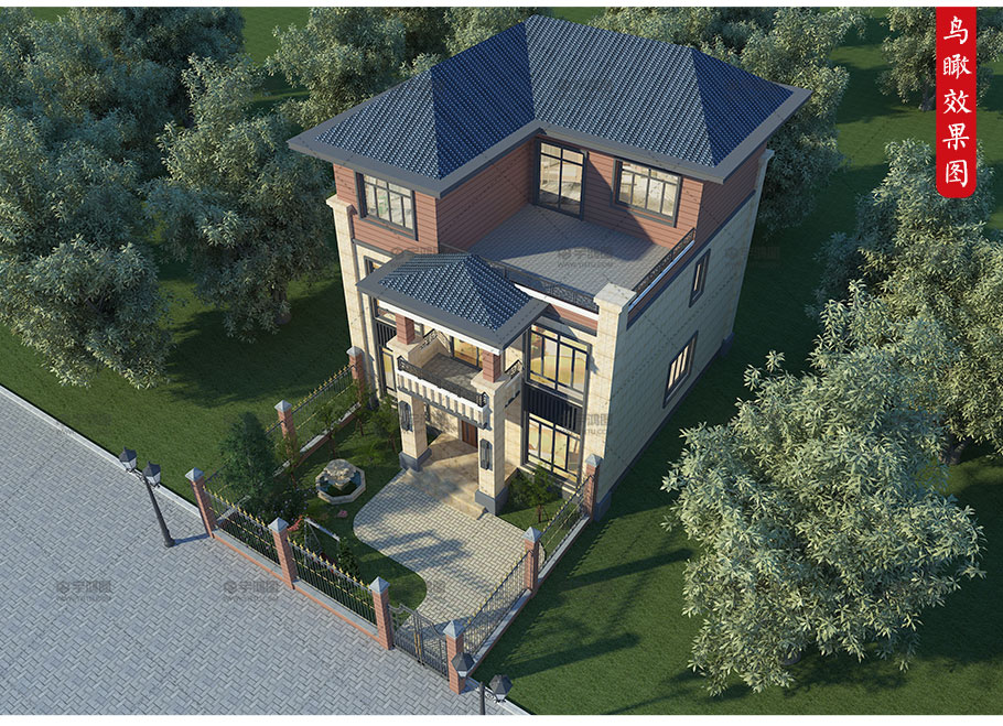2021新款農村三層歐式別墅設計圖紙,本戶型為農村三層歐式風格別墅設計圖,復式結構中空客廳,戶型尺寸為10×12.3米,該戶型外觀主要以暖色系裝飾,坡屋頂高低錯落很有層次,外立面結構豐富,色彩搭配簡潔大方,室內布局規劃合理精確,主臥帶有衣帽間,三層設有大露臺,適合現代新農村建房。