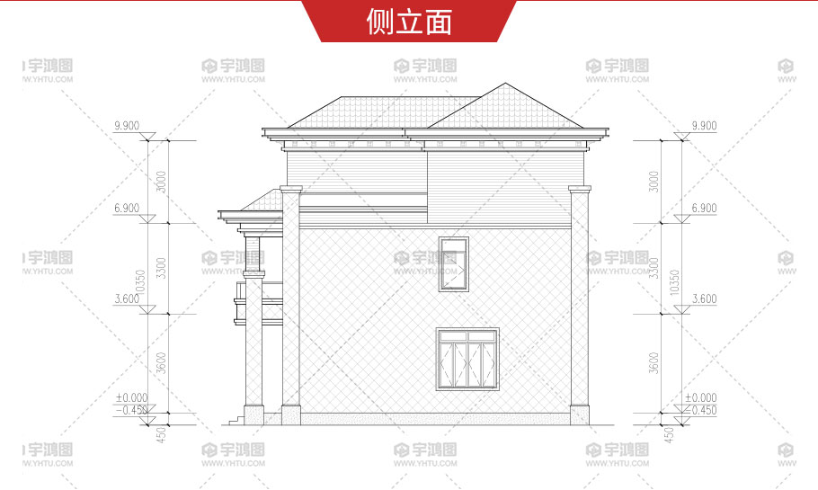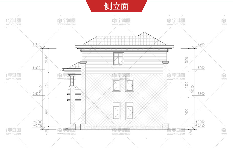 建筑立面圖:東立面圖,西立面圖,南立面圖,北立面圖,剖面圖;